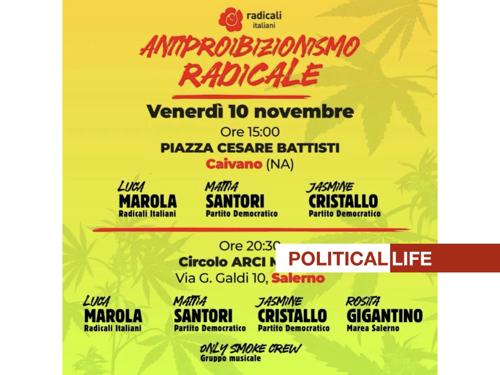 Caivano – Un’iniziativa dei Radicali Italiani pone all’ordine del giorno la regolamentazione della cannabis come mezzo di lotta al crimine organizzato, con eventi programmati per venerdì 10 novembre. Il dibattito inizierà alle 15:00 a Caivano, in Piazzale Cesare Battisti, con Luca Marola, Mattia Santori e Jasmine Cristallo, esponenti delle direzioni nazionali di Radicali Italiani eContinua a leggere “Caivano – Radicali Italiani Promuovono Dialogo sull’Antiproibizionismo”